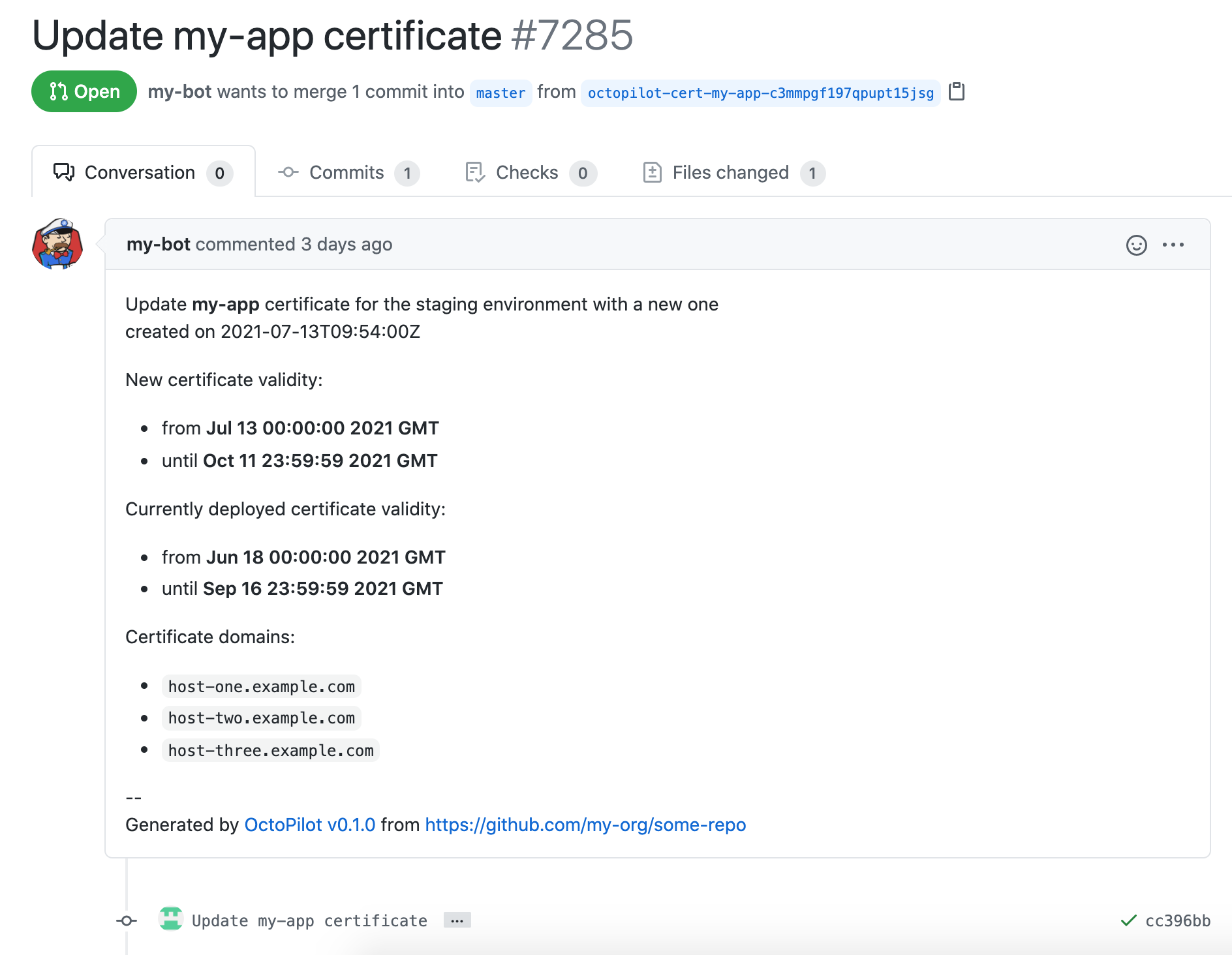 • git-commit-footer (string): the footer of the commit. Default to Octopilot’s signature, to indicate that this commit was generated by a tool.